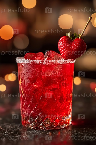 Коктейль ко Дню святого Валентина с кусочком клубники в форме сердца