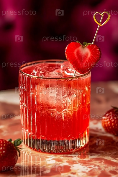 Коктейль ко Дню святого Валентина с кусочком клубники в форме сердца