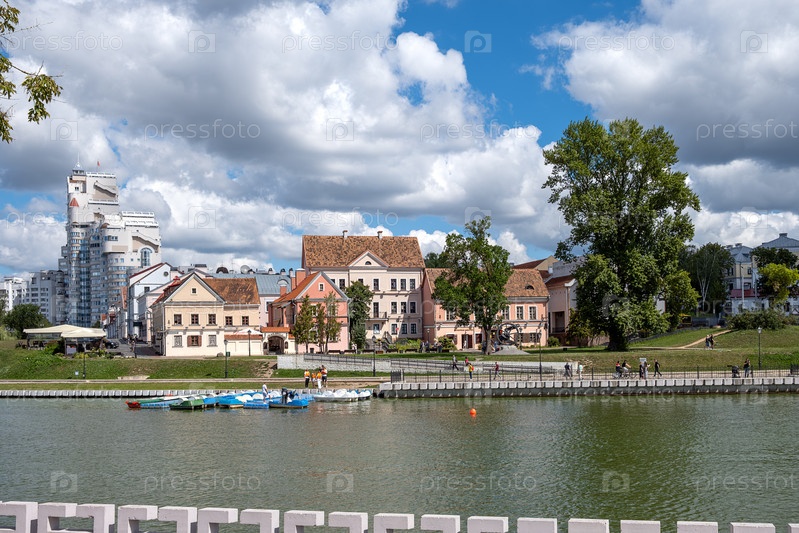Минск, Беларусь - 14 августа 2024 г. Вид на исторический район Троицкого предместья