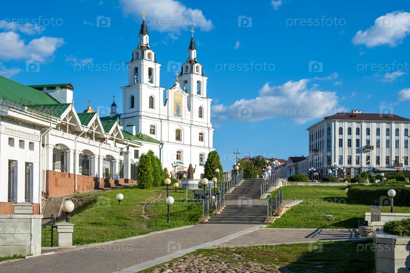 Минск, Беларусь — 14 августа 2024 года. Свято-Духов собор величественно возвышается под голубым небом
