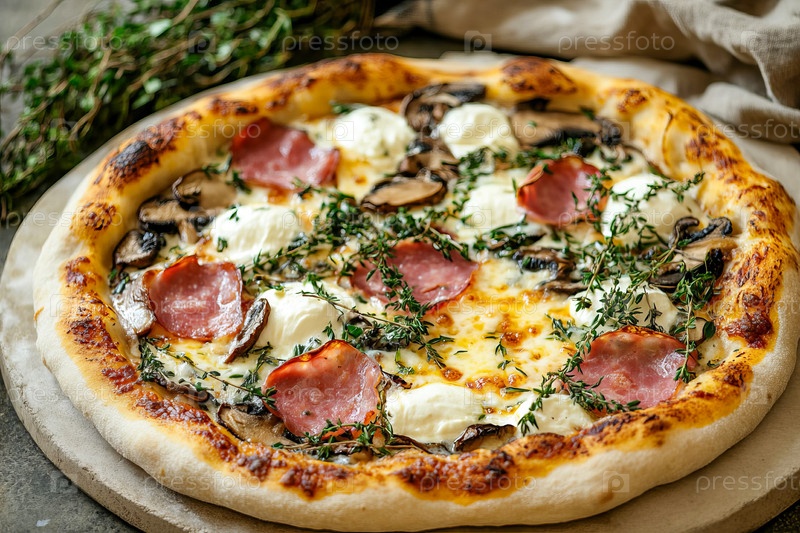 Пицца с ветчиной, моцареллой и грибами. Универсальная еда, Фастфуд
