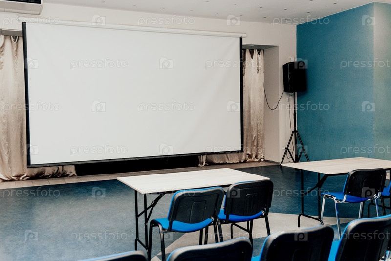 Интерьер большого класса, студенческий класс в институте, лекция в конференц-зале