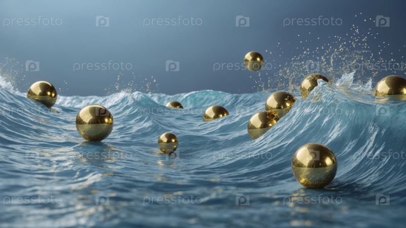 Золотые сферы в синих волнах