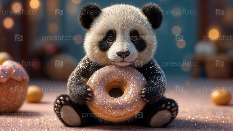 Милая панда держит пончик