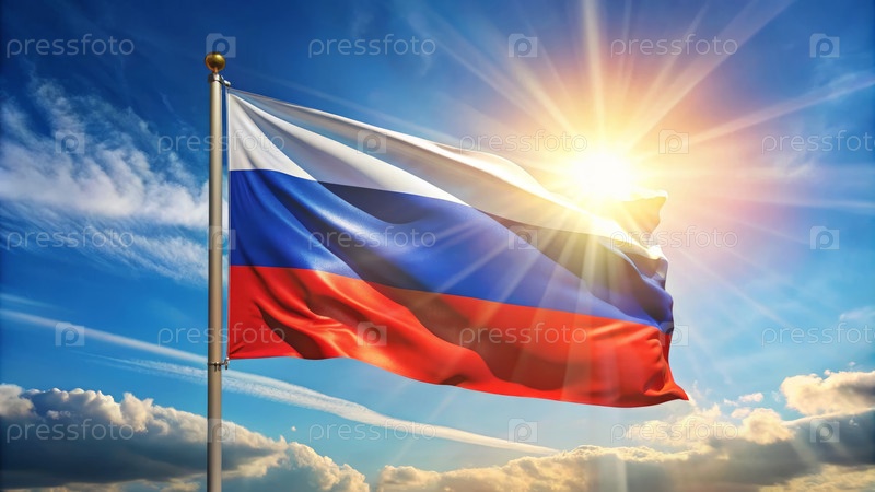 Российский флаг на фоне голубого неба