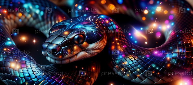 Голографическая змея на черном фоне