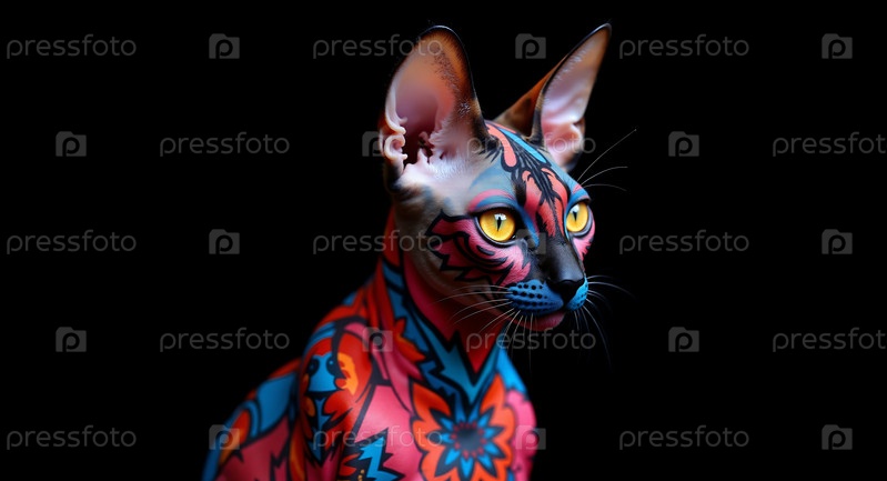 Кот с разноцветной краской на мордочке и ушах