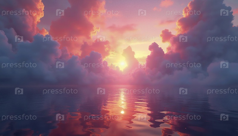 Волшебный морской пейзаж с розовыми облаками