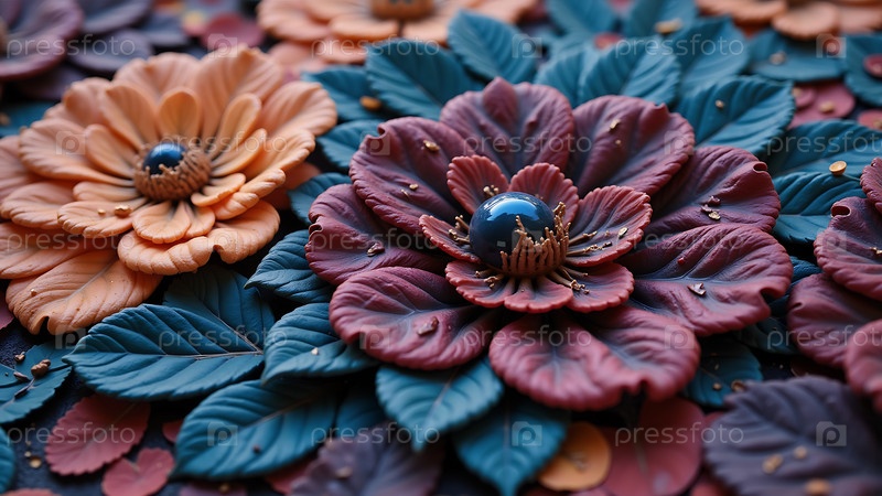 Крупный план цветочной композиции с синим и золотым цветком