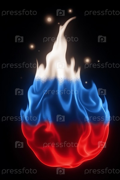 Пламя в цветах российского флага на черном фоне