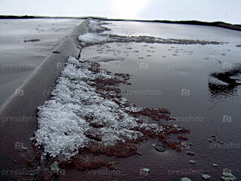Тающий снег на железной крыше