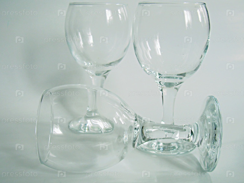 Стеклянные фужеры на белом фоне