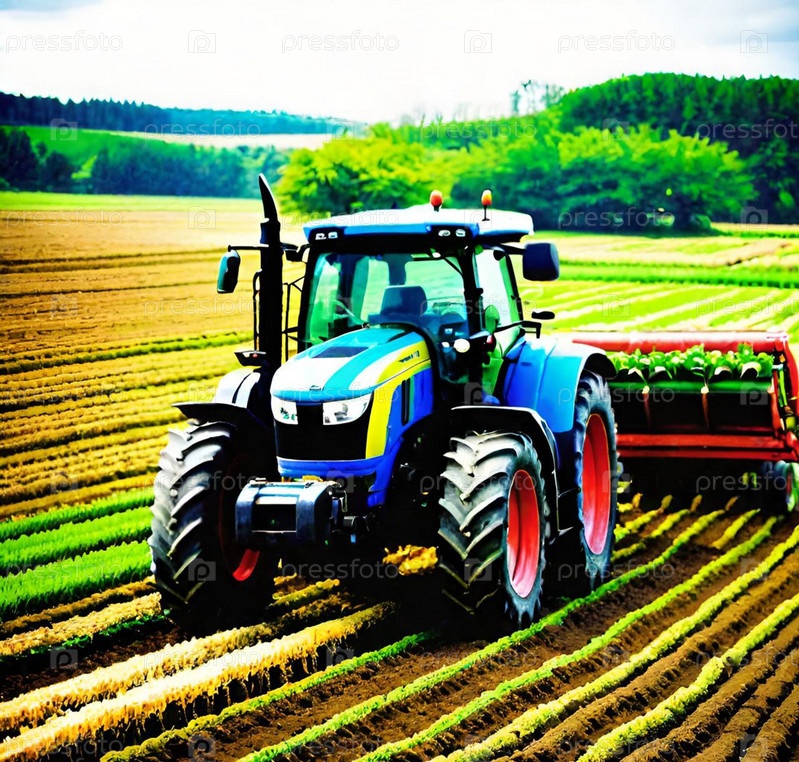 Трактор в поле, сельскохозяйственные работы ИИ