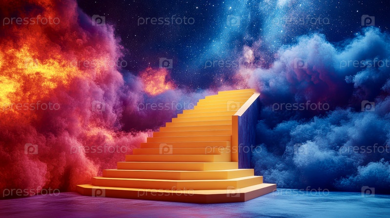 Желтая лестница, поднимающаяся среди волшебных облаков