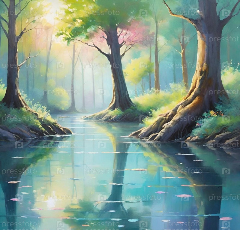 Фантастический пейзаж, весна, весенний лес, дерево, почти как в Аватаре ИИ