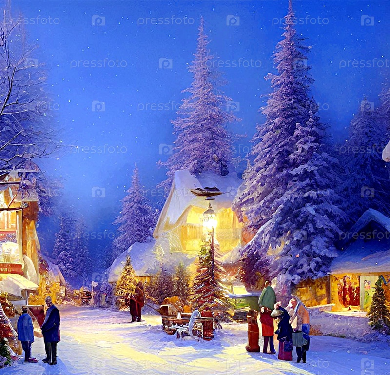 Сказочный зимний пейзаж, праздник, атмосфера праздника на улицах ИИ