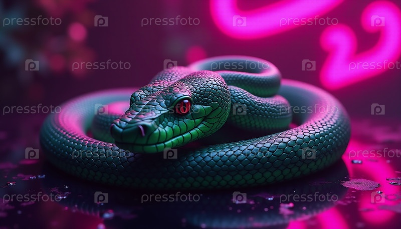 Змея на розовом неоновом фоне