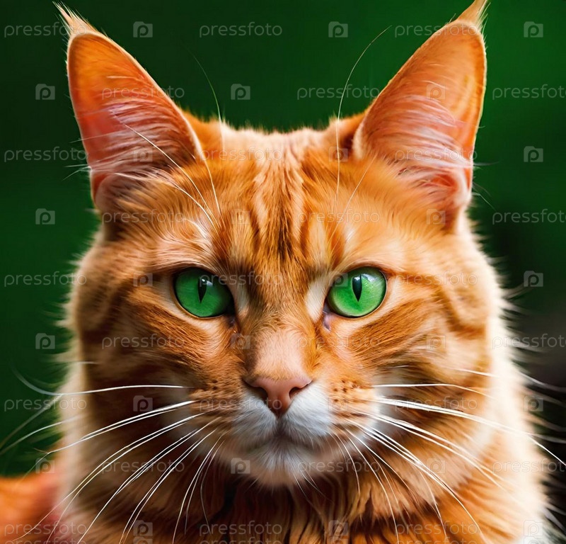 Рыжий кот с зелеными глазами ИИ
