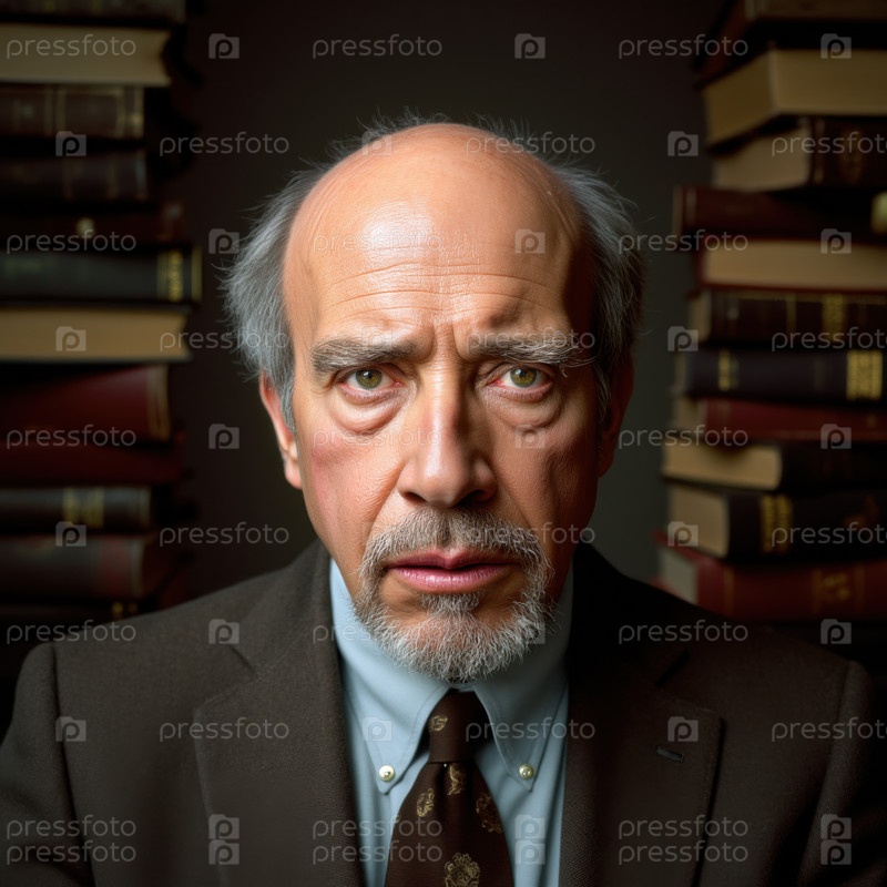 Портрет пожилого мужчины в библиотеке с книгами на заднем плане. Генерация ИИ