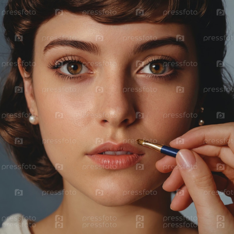 Портрет девушки с кисточкой для макияжа. Генерация ИИ