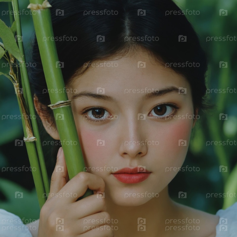Портрет азиатской девушки на фоне бамбука. Генерация ИИ
