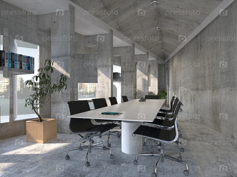 Футуристический офис с геометрическим окном. 3D-рендеринг