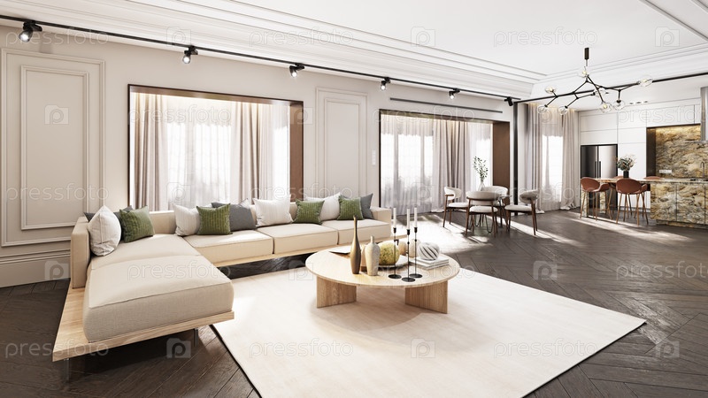 Гостиная с современной мебелью,