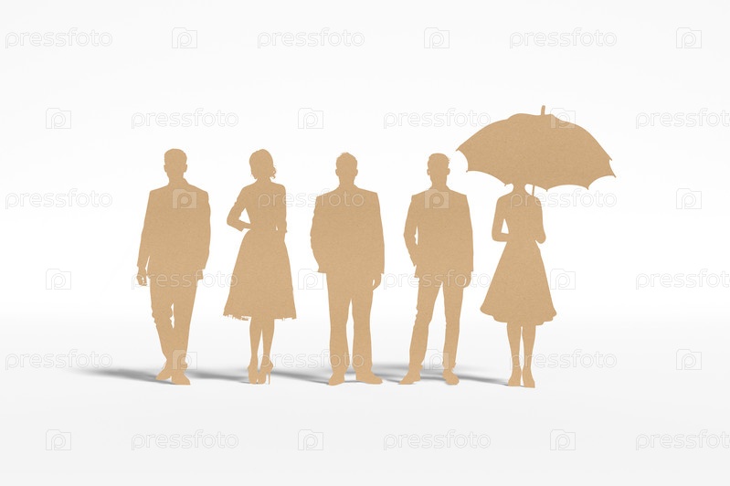 Силуэты деловых людей, ходящих с зонтиком. 3D-рендеринг
