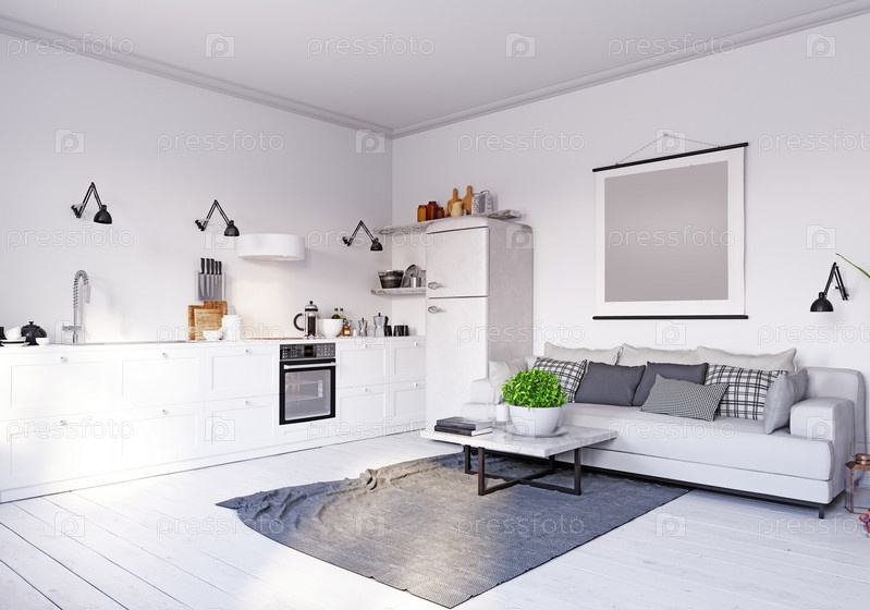 Современный дизайн интерьера гостиной. концепция 3d-рендеринга