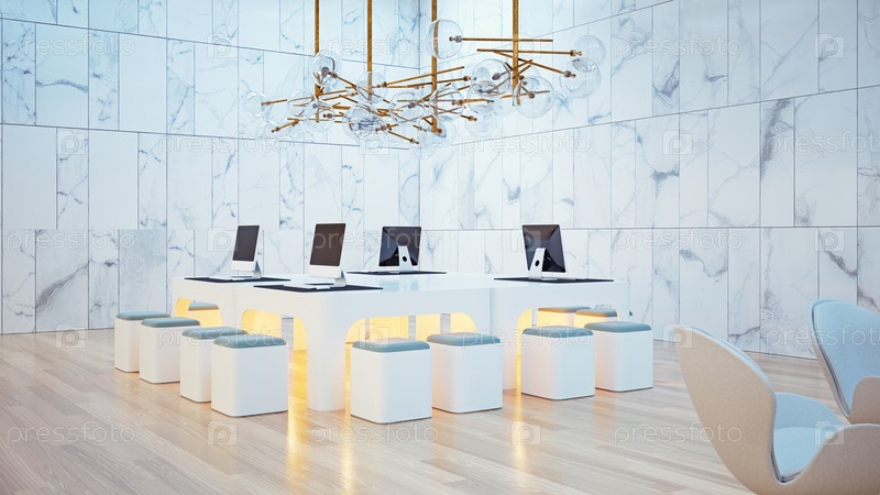 Современная концепция дизайна офиса. 3d визуализация бизнес-интерьера