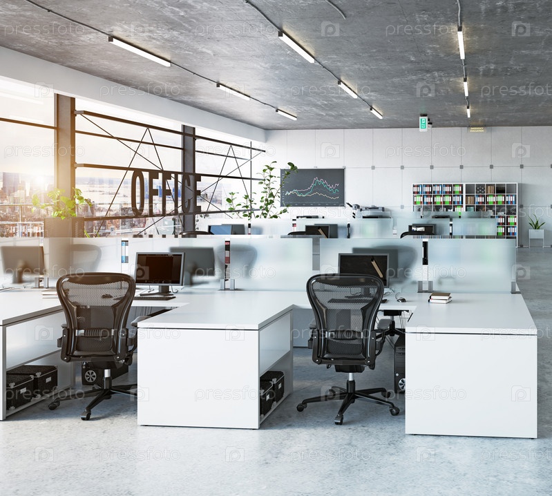 Современный интерьер офиса, 3d визуализация бизнес-концепции дизайна
