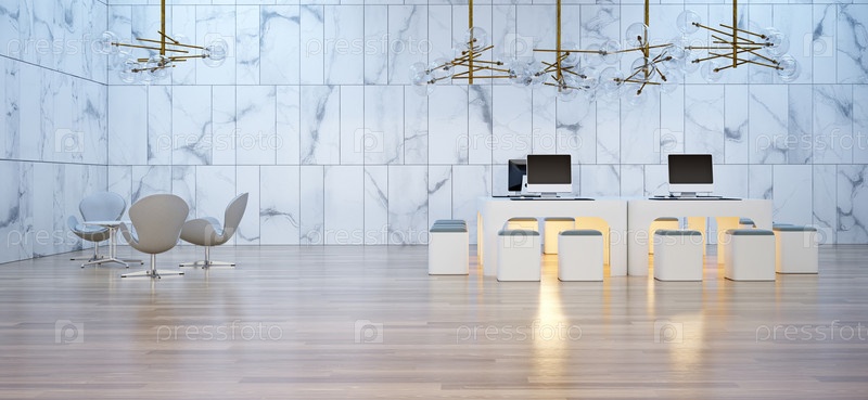 Современная концепция дизайна офиса. 3d визуализация бизнес-интерьера