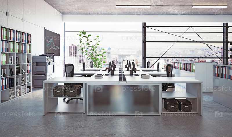 Современный интерьер офиса, 3d визуализация бизнес-концепции дизайна