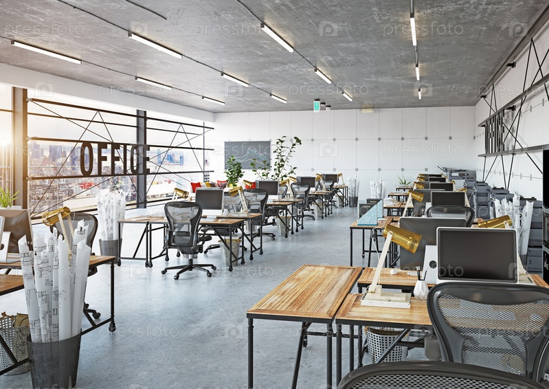 Современный интерьер офиса, 3d визуализация бизнес-концепции дизайна