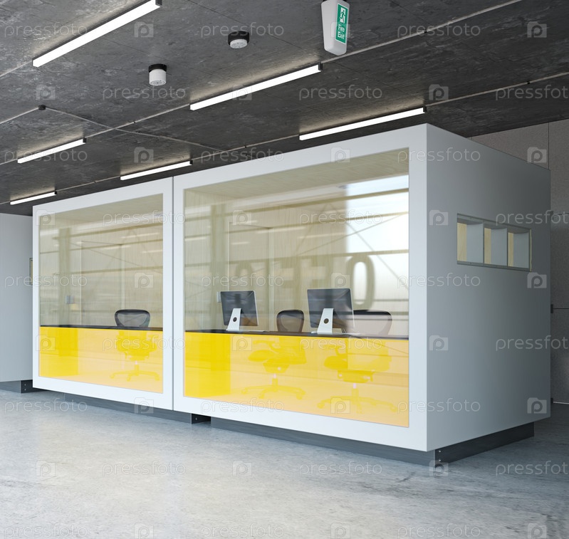 Современный интерьер капсульного офиса, 3d-рендеринг бизнес-концепции дизайна