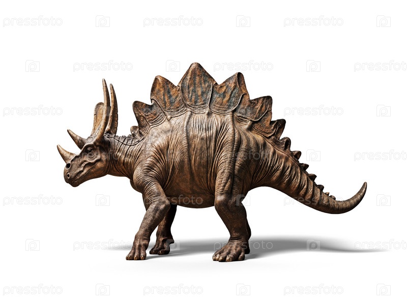Рогатый стегозавр, стоящий на белом фоне,