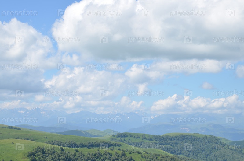 Вид со смотровой площадки у перевала Гум-Баши (Гумбаши) в горах Кавказа, Карачаево-Черкесская Республика