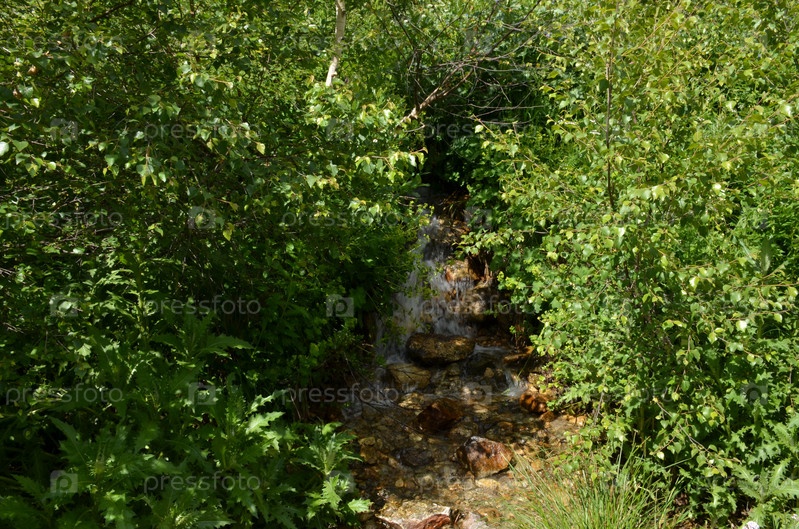 Маленький водопад на горном ручье в Тебердинском национальном парке, Карачаево-Черкесская Республика