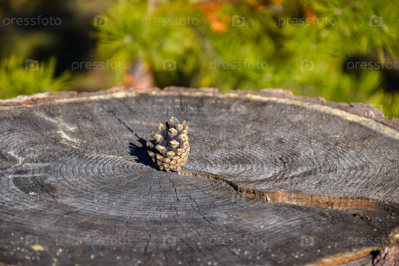 Сосновый пень, шишка на пне