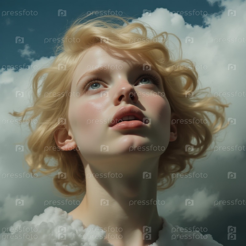 Ретро-портрет молодой женщины в облаках. Поколение ИИ