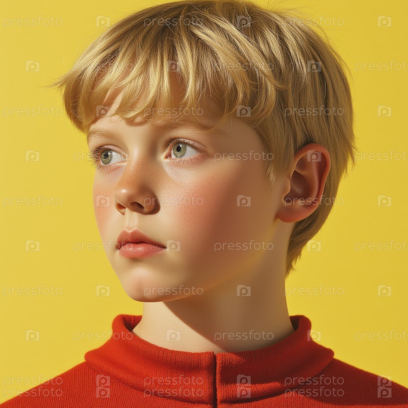 Портрет мальчика в стиле ретро на желтом фоне. Генерация ИИ