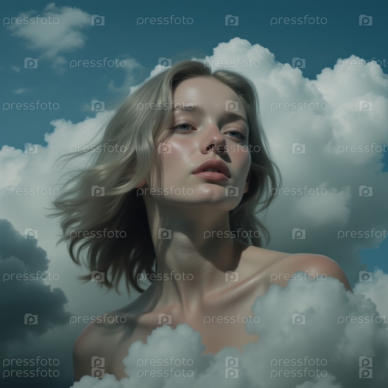 Ретро-портрет блондинки в облаках. Генерация ИИ