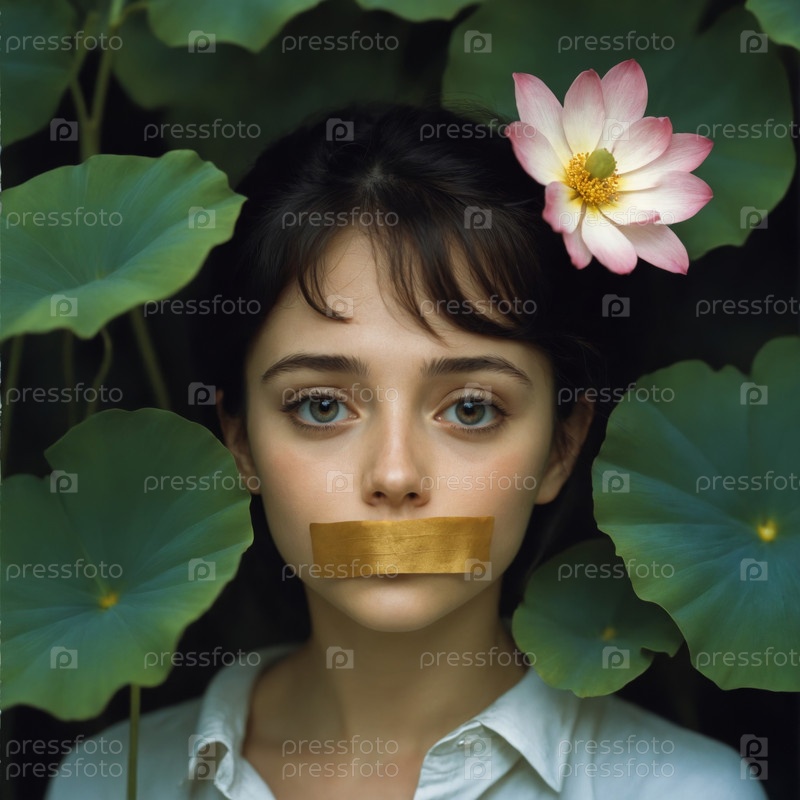 Молодая девушка с заклеенным ртом