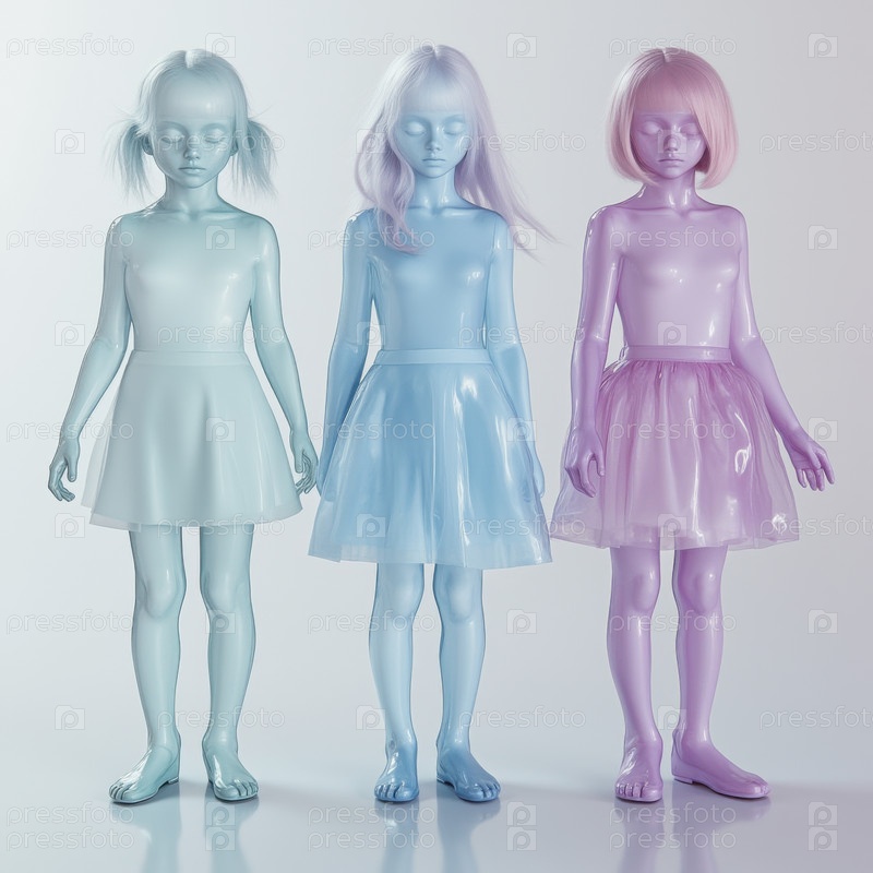 Футуристический образ кукольных и прозрачных идеалистичных молодых женщин. Поколение ИИ