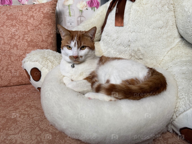 Рыжий кот сидит на лежанке