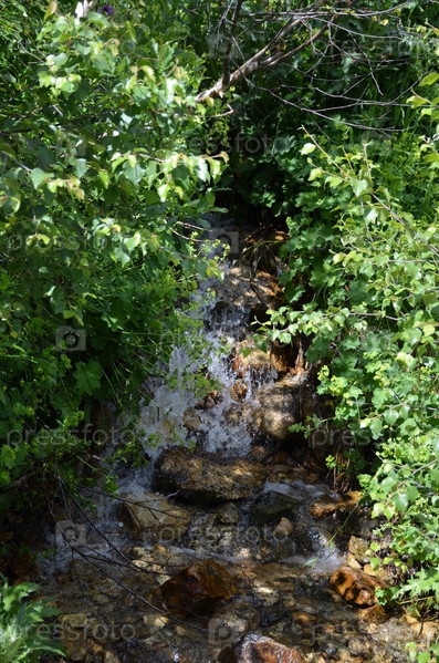 Маленький водопад на горном ручье в Тебердинском национальном парке, Карачаево-Черкесская Республика