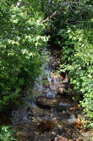 Маленький водопад на горном ручье в Тебердинском национальном парке, Карачаево-Черкесская Республика