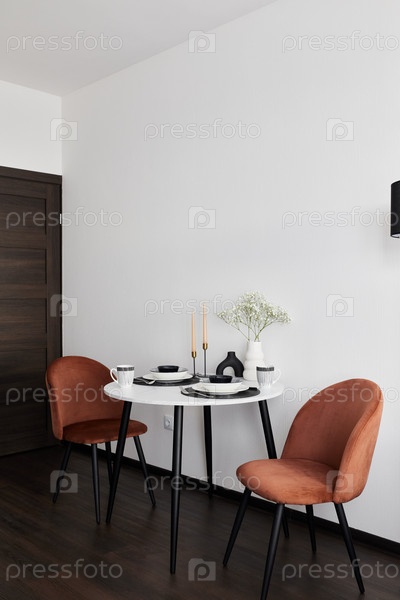 Элегантный современный обеденный уголок с шикарной мебелью и красивыми декоративными акцентами