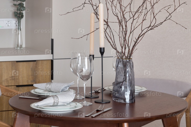 Элегантный обеденный стол со стильными элементами декора для создания прекрасной атмосферы