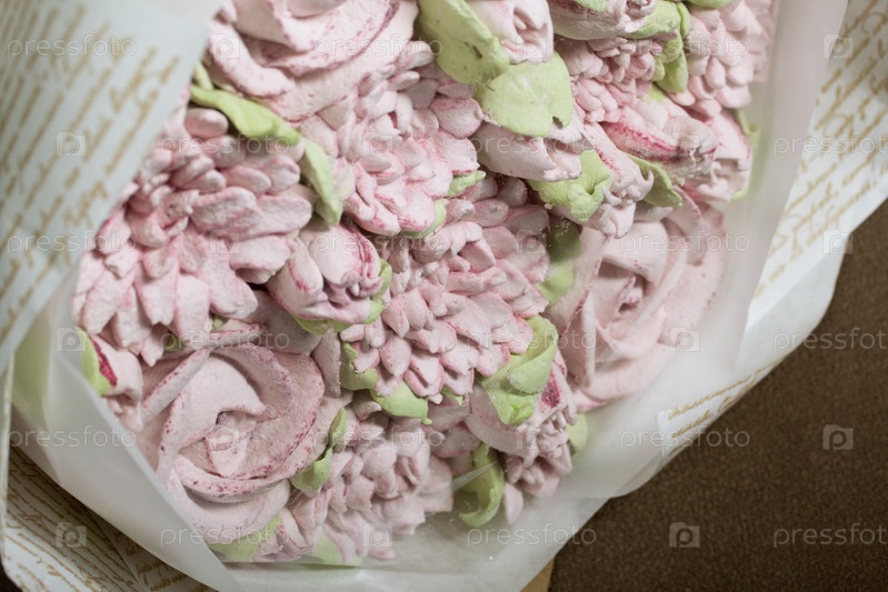 Букет из зефира. Зефирные цветы. Упаковано в крафтовую бумагу